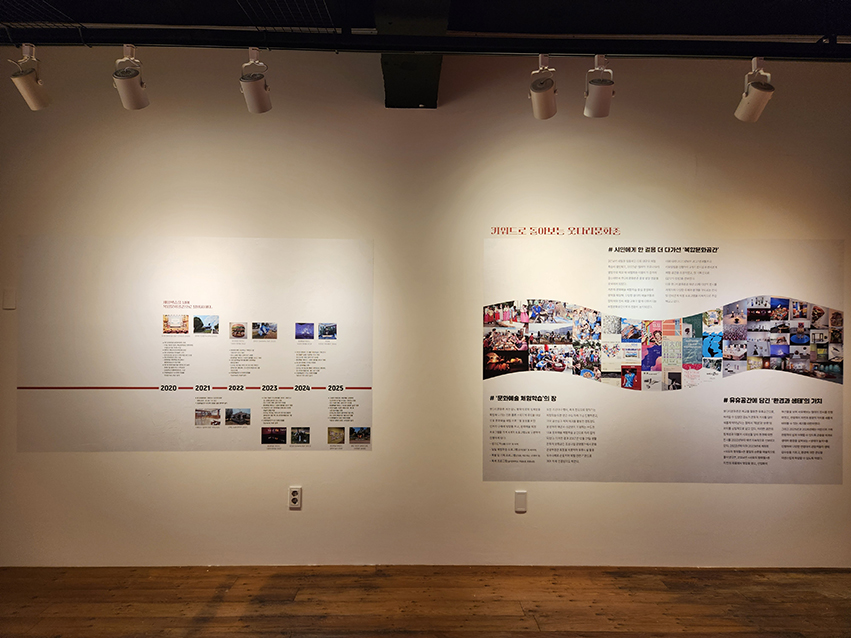 이번 전시는 1946년 금각초등학교의 개교부터 웃다리문화촌의 개관 준비 과정, 2006년 개관 이후 20년간의 변화와 성장을 조망하고, 사진과 영상 자료를 중심으로 웃다리문화촌이 축적해 온 시간과 성과를 되짚어보고자 한다.