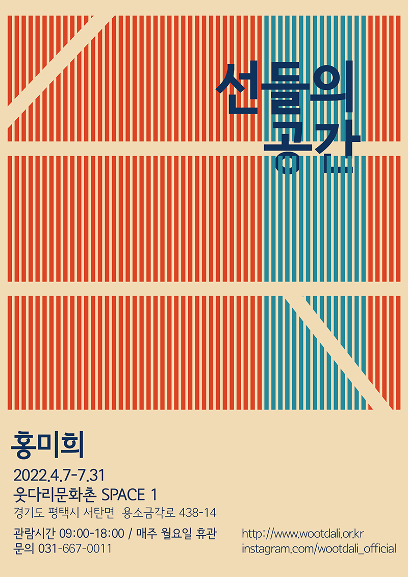 거울과 투명 유리창이 있는 제1전시실에 설치되는 선들의 공간 전시는 조형요소인 선들이 반복되면서 평면적이기도 하고 입체적이기도 한 공간들을 보여주는 전시이다. 무한한 공간으로 확장성을 띠는 선들은 실제로 존재함과 동시에 비현실적 공간으로 우리의 시각을 안내하는 역할을 한다. 선을 통하여 평면적 회화공간에서 입체적 회화공간 그리고 그 이상의 다차원 공간까지 상상해보며 공간 안-밖을 넘나들면서 즐겨보는 시간이 되길 바란다.