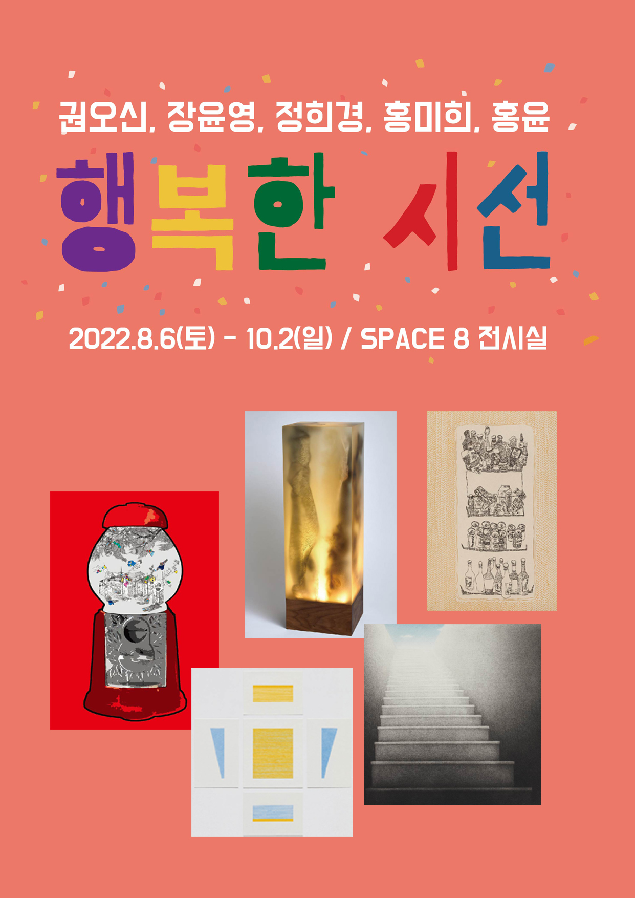 권오신, 장윤영, 정희경, 홍미희, 홍윤 다섯명의 작가가 참여한 <행복한 시선>展은 드로잉, 판화, 회화, 공예 등의 작품을 한곳에서 감상할 수 있다. 다양한 장르의 작품으로 구성된 <행복한 시선>展을 통해 예술을 감상하고 평범한 일상생활에 지친 마음을 위로하는 소소한 행복을 선사 하고자 한다.