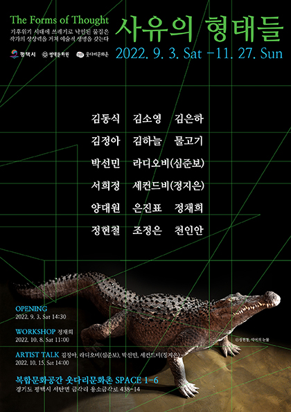 「사유의 형태들」展은 회화, 콜라쥬, 오브제, 공예, 디자인, 설치, 아트 퍼니처, 영상 등 작가 16인의 다양한 현대미술의 방법들로 표현한 작품을 감상할 수 있다.