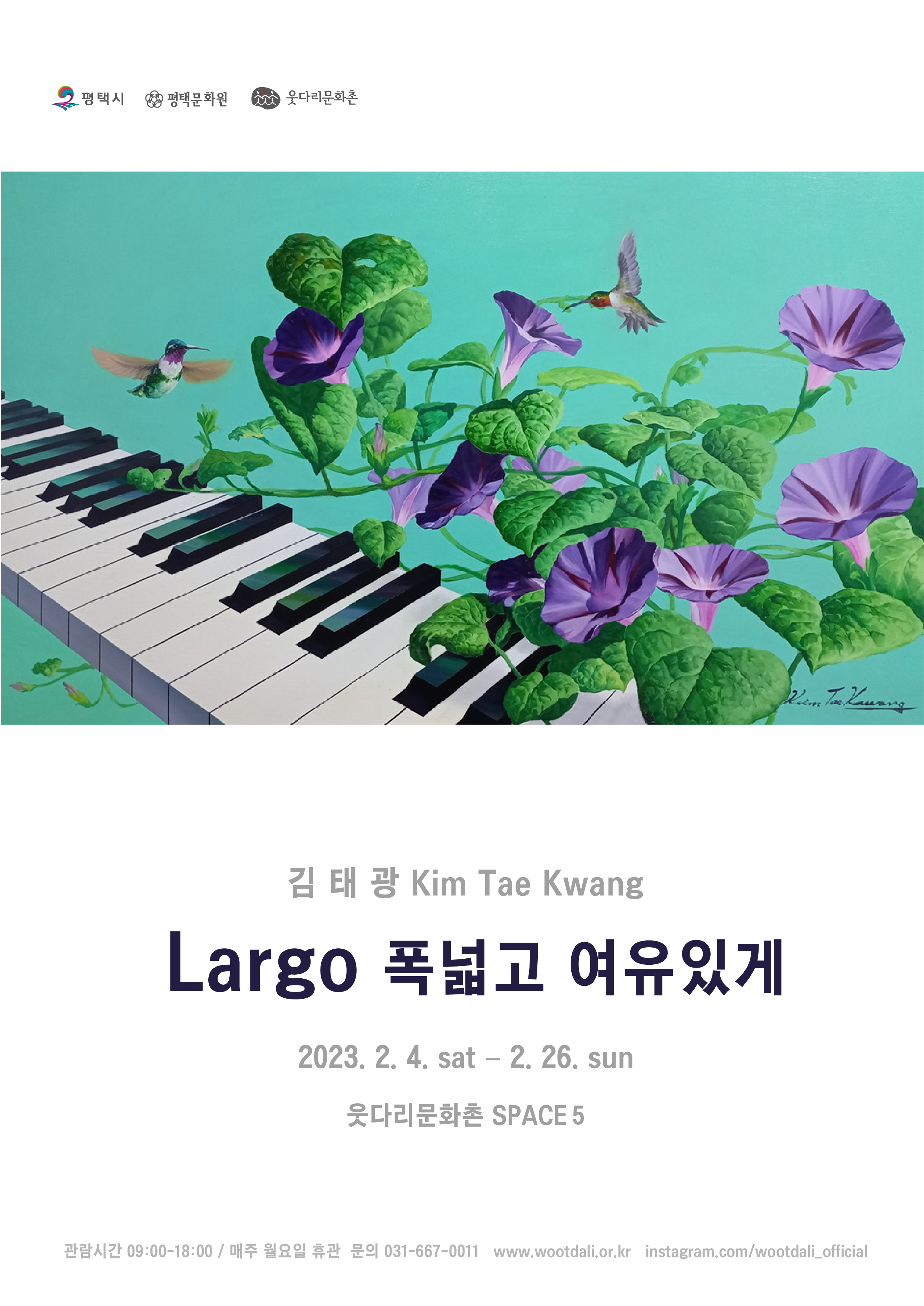 김태광 개인전 은 물감으로 가득하지만 빈 듯한 면의 처리로 작품 속 배경들은 보는 이로 하여금 새로운 공간을 상상하게 한다. 작가는 코로나 19 팬데믹으로 인해 경제적 정신적으로 외부와 차단된 작가만의 조용한 공간 속에서 잔잔한 희망을 바라는 내면의 소리를 담은 작품 16점을 선보인다.
