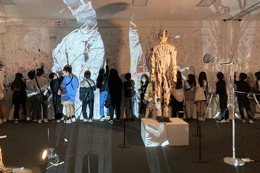 SPACE1의 <안아주세요>는 아이들이 친구의 부상 부위를 감싼 깁스에 낙서하는 장면에서 영감을 받아 제작된 작품이다. 상처에 갇혀 신음하는 사람의 형태를 철사로 표현하고 붕대를 감은 작품에 관람객들은 자기 자신, 혹은 타인에게 전하는 위로의 메시지를 직접 적어보는 기회를 제공하여 상처를 치유하는 시간을 갖게한다.