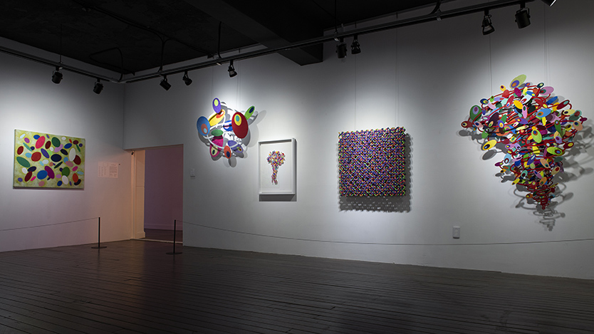 이 전시에서 선보일 ‘Chaos in Chaos’ 시리즈는 컬러풀한 타원의 공작새를 신(학)적 매개체로 역동적으로 표현하고 있다. 형상 없는 주체를 3차원의 공간적 여백에서 만들어 내며, 인간의 오감으로 느낄 수 없는 Theophany(신의 출현)를 정황으로 가늠하게 한다.
