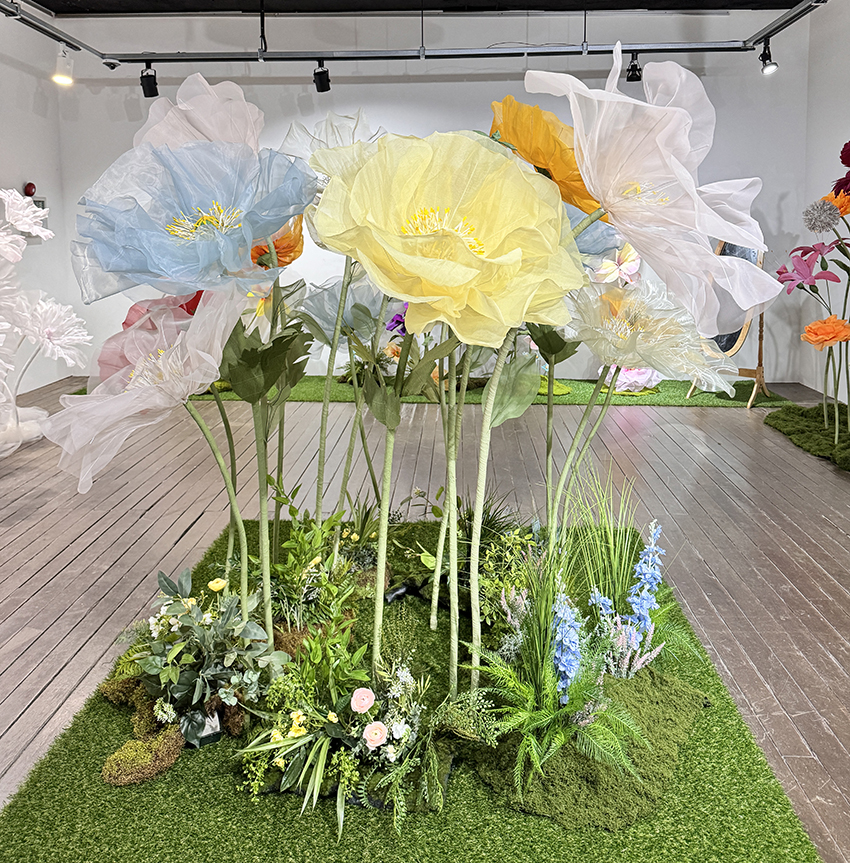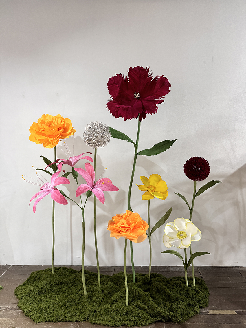 에버블룸의 <꽃으로 새롭게 피어나다.>는 3인의 자이언트 플라워 작가들이 헌책과 폐플라스틱을 사용하여 거대한 꽃을 표현한다. 버려진 자원을 아름다운 꽃으로 재탄생시키며 환경 보호의 중요성을 전달한다.