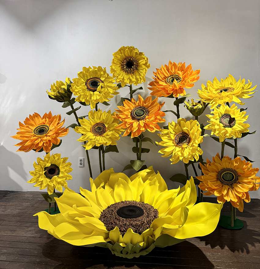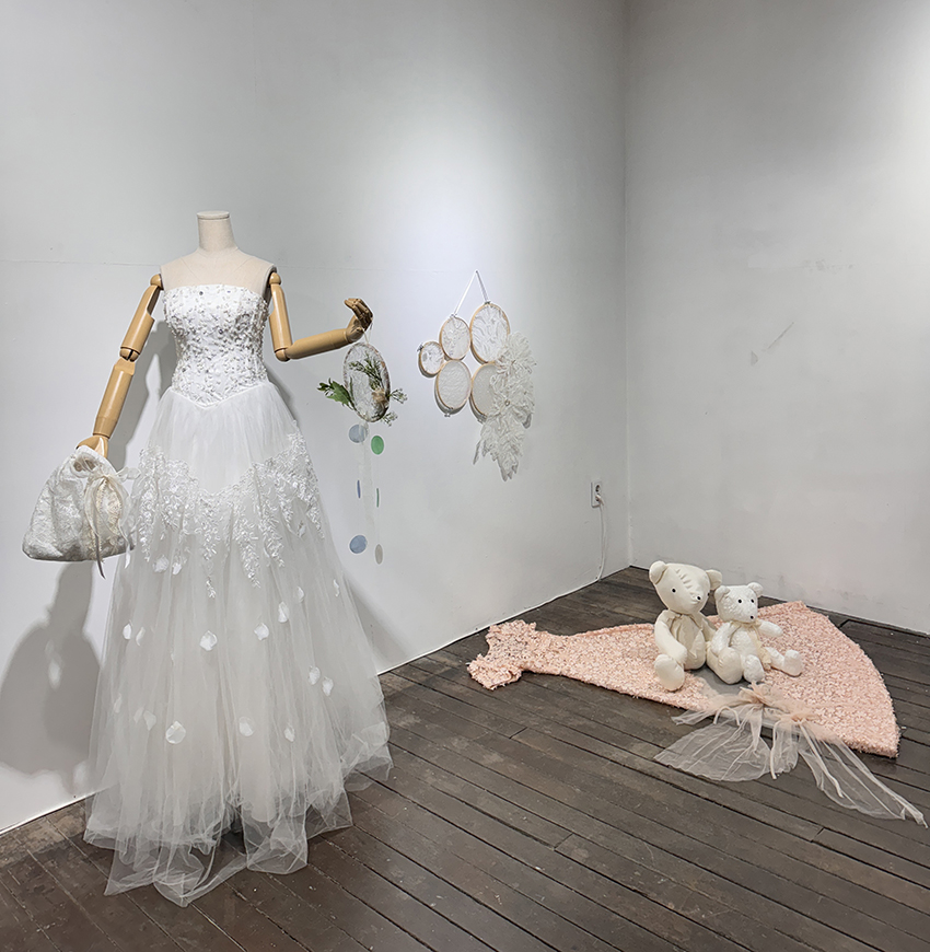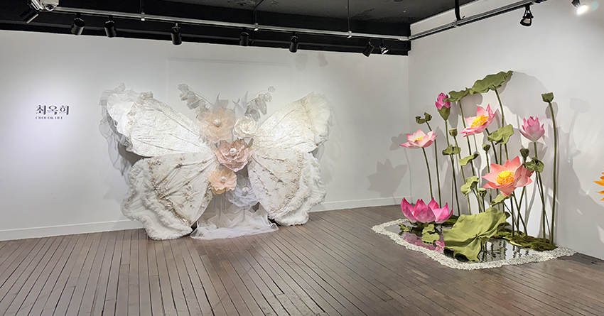 장채원, 최옥희의 <폐섬유와 자이언트 플라워의 만남>은 유행이 지나거나 필요가 없어 버려진 웨딩드레스와 양말목 같은 폐섬유를 재활용한 작품과 자이언트 플라워가 어우러진 전시이다. 패스트 패션 소비에 대한 반성의 메시지를 작품과 결합하여 지속 가능한 예술에 대해 제시한다.