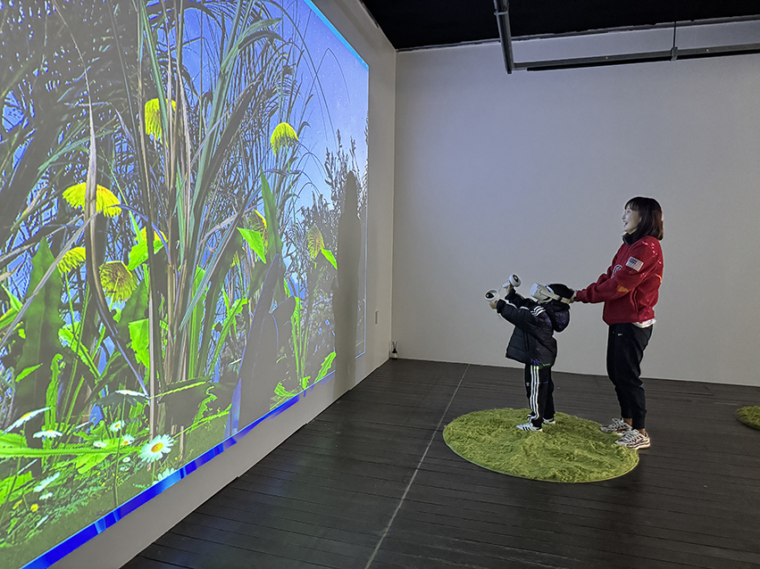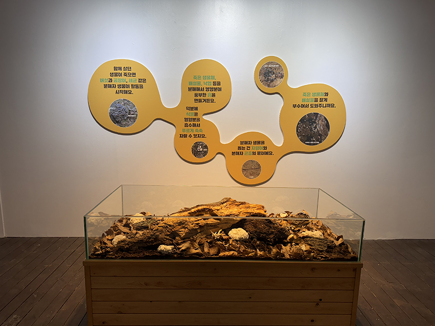 첫 번째 구성「서로 도우며, 이어져 살아요」에서는 곤충을 중심으로 식물과 동물이 서로 먹고, 먹히며 남겨진 것들이 미생물에 의해 다시 자연으로 돌아가 새로운 생명으로 이어지는 이야기를 전한다. 이와 함께 가상현실(Virtual Reality) 체험을 접목해 관람객이 자연 속 곤충들과 상호작용하며 전시에 대한 몰입도와 흥미를 느낄 수 있도록 했다.