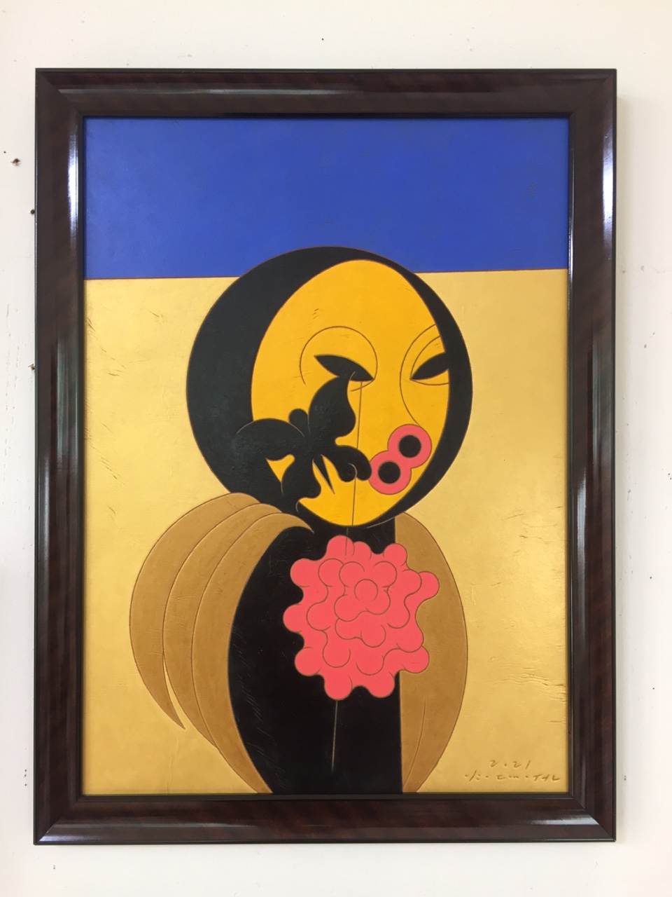 [욕망-나비1] 2021, 광목천 위에 한지, 아교, 아크릴, 토분, 커피, 린시드유, 오래된 액자, 47x35cm